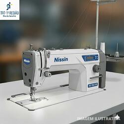 Máquina de costura do tipo “travete”, da marca Nissin, Modelo NS-1842-HH. Avaliada em R$ 4.800,00