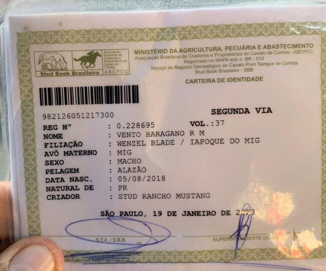 Cavalo Puro Sangue Inglês - nome "Vento Haragano"
